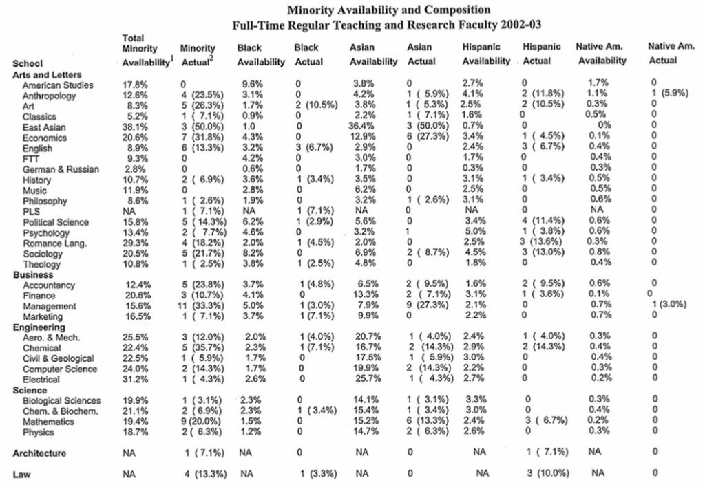 [29] Notre Dame Reports, University of Notre Dame, Annual Report of the Academic Affirmative Action Committee for the Academic Year 2002–2003, 185 accessed at